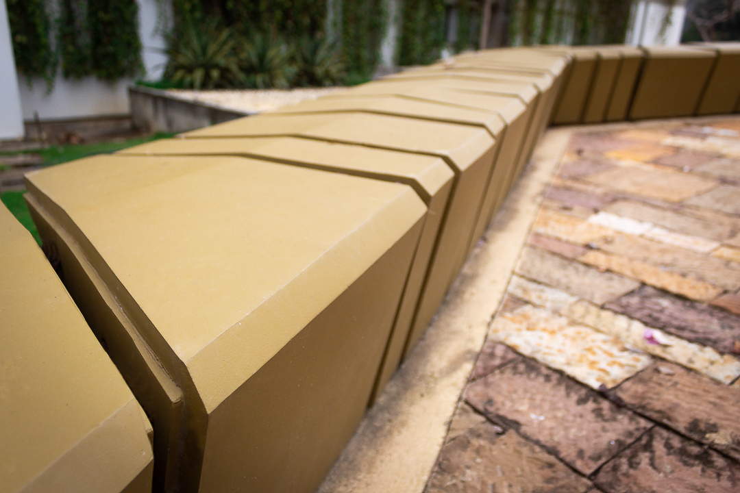 Elemento monolítico de tipo modular, de alta resistencia y bajo mantenimiento para sentarse y descansar por tiempos prolongados. Uso como elemento tanto decorativo como en áreas de ocio, esparcimiento y recreación, tales como plazoletas, alamedas y parques. Las bancas están orientadas a evitar cualquier obstrucción de la circulación en las zonas peatonales.