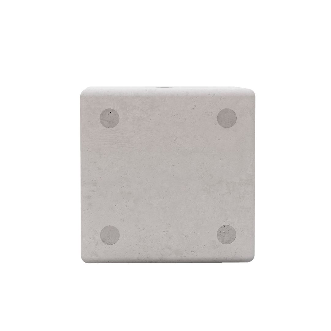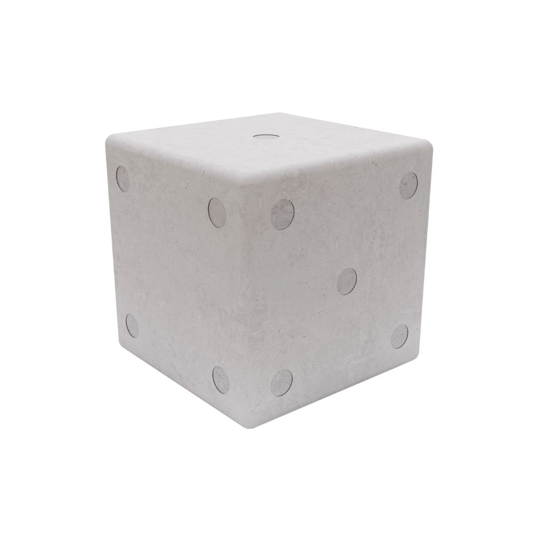 Butaco que se caracteriza por su diseño en forma de dado y acabados sobrios, es ideal para espacios abiertos, plazoletas, parques infantiles, hoteles y lugares comerciales.
