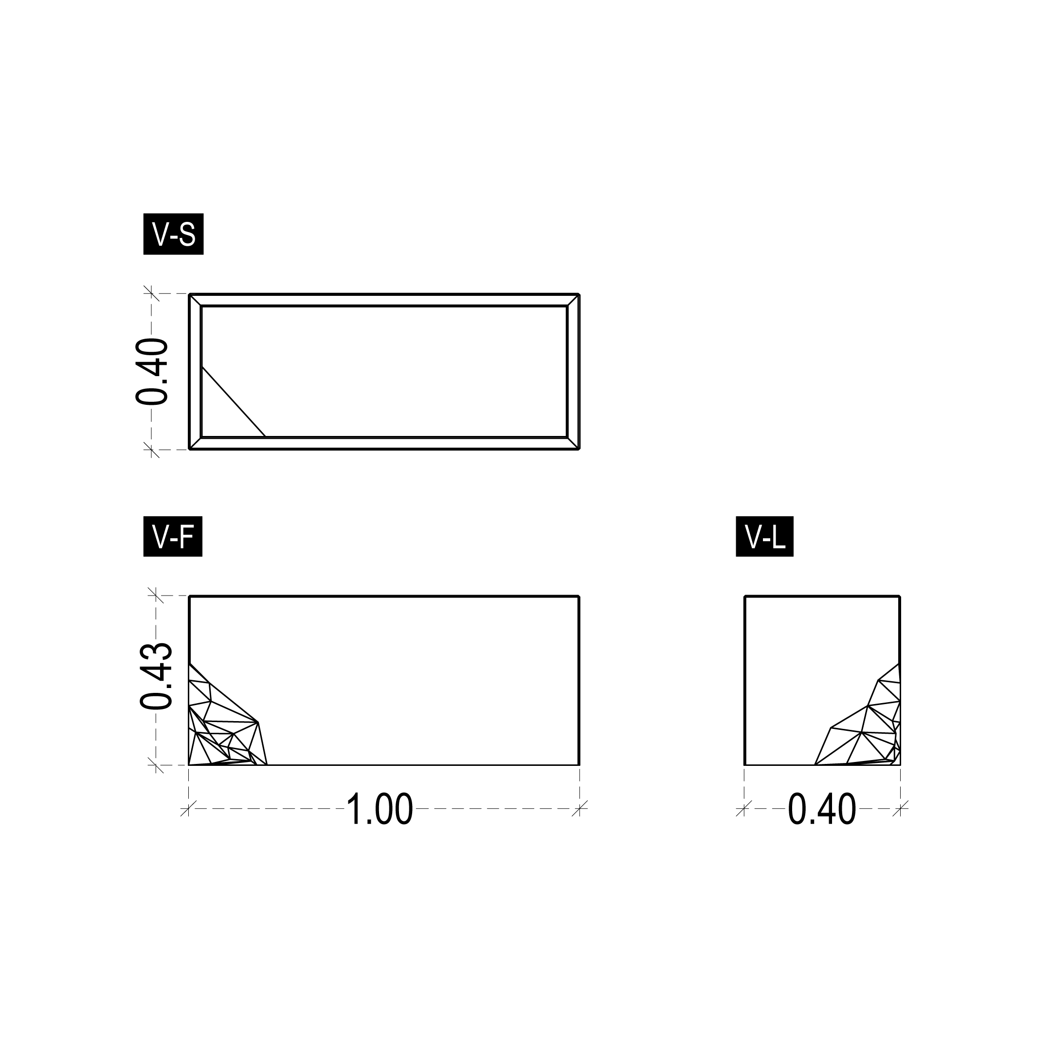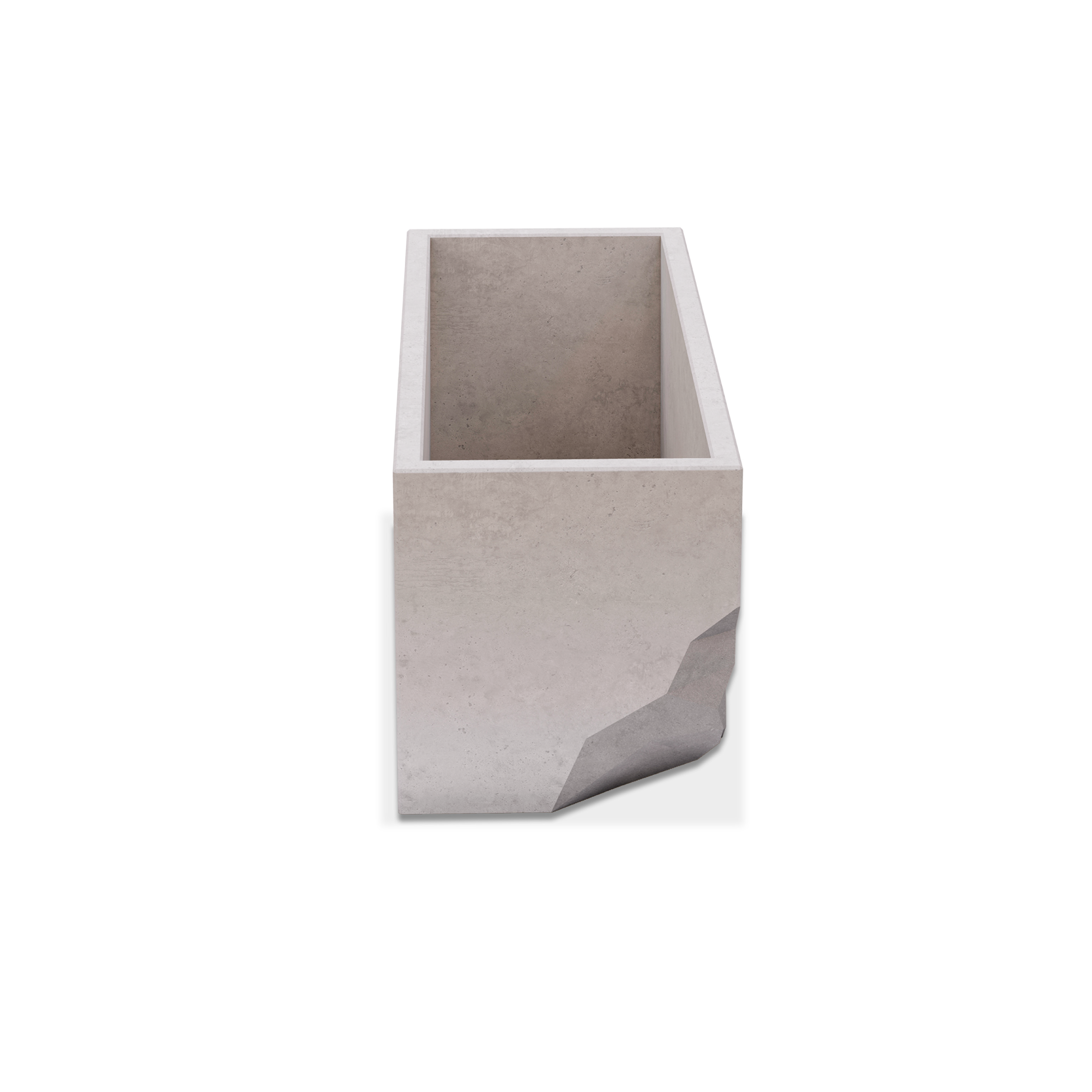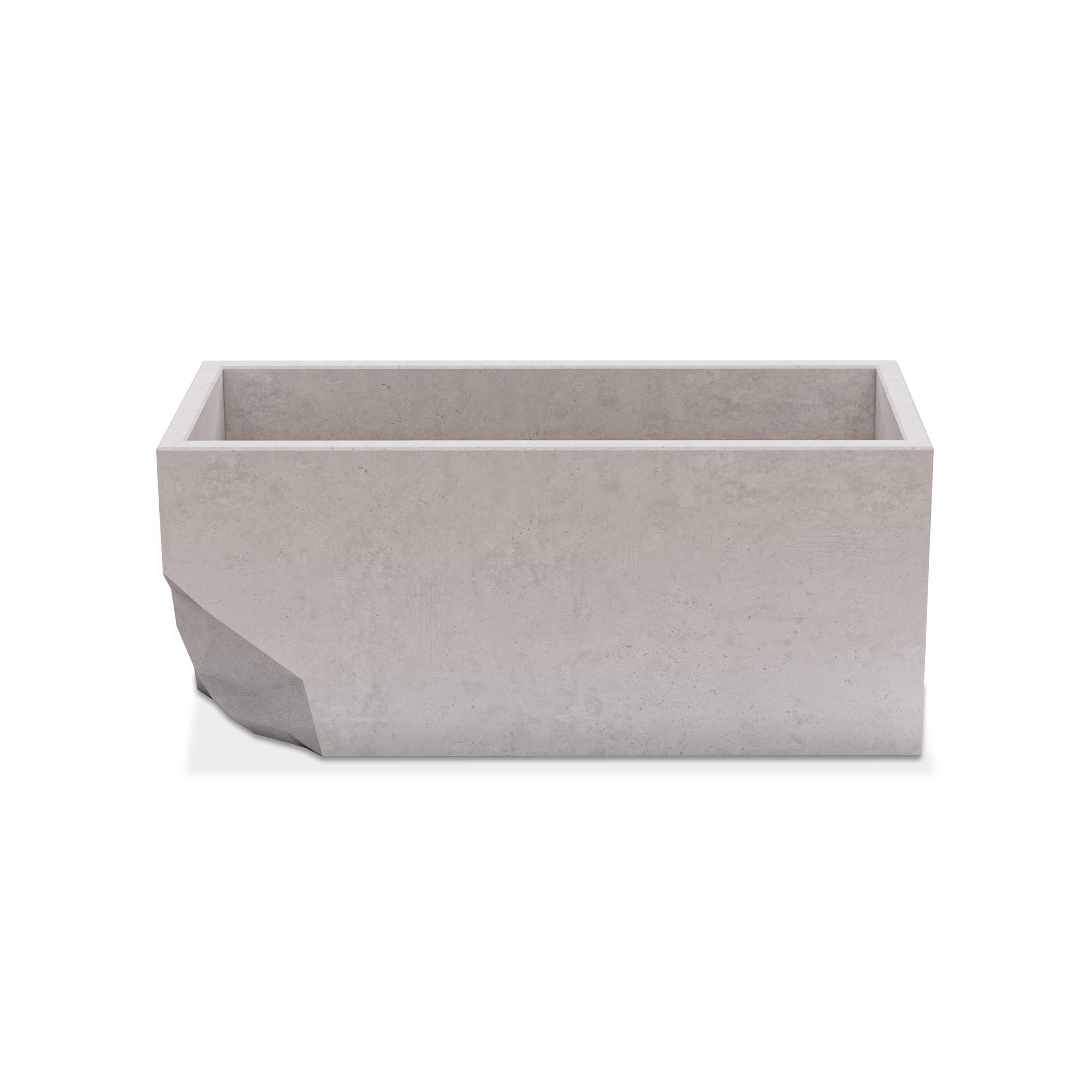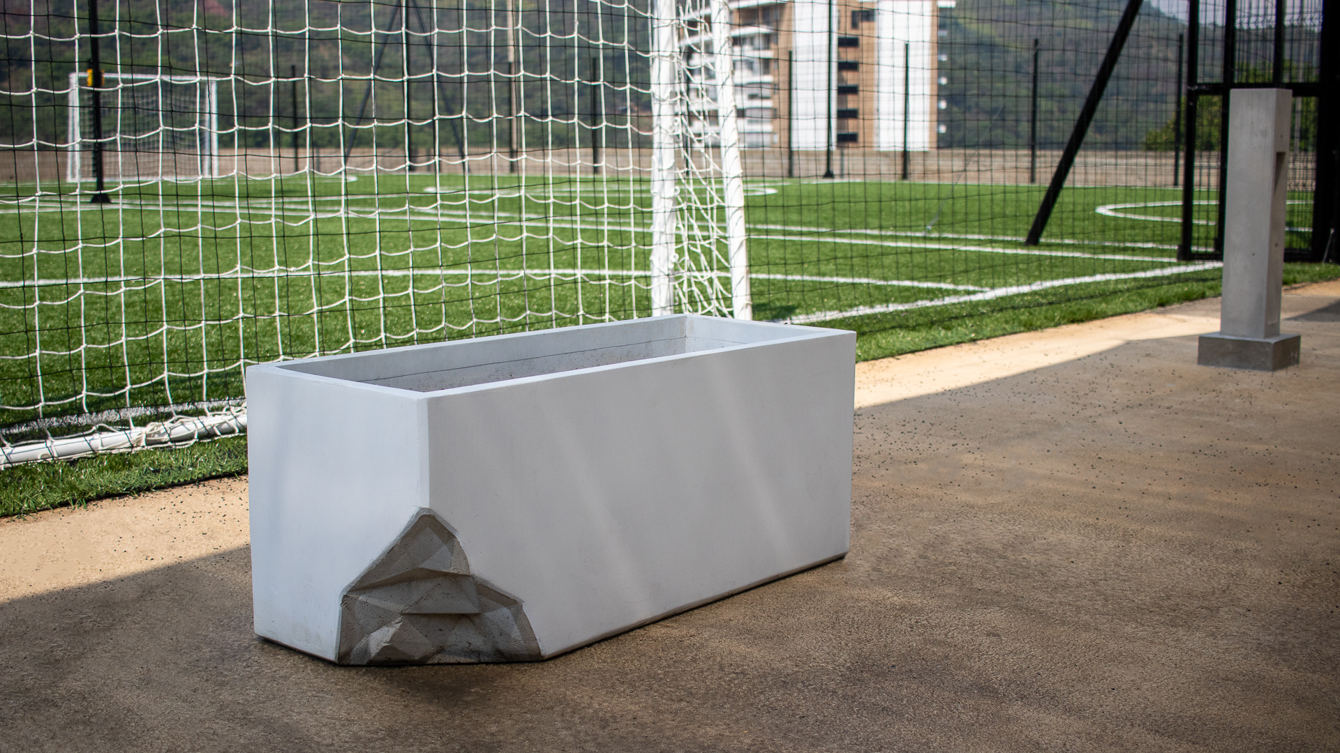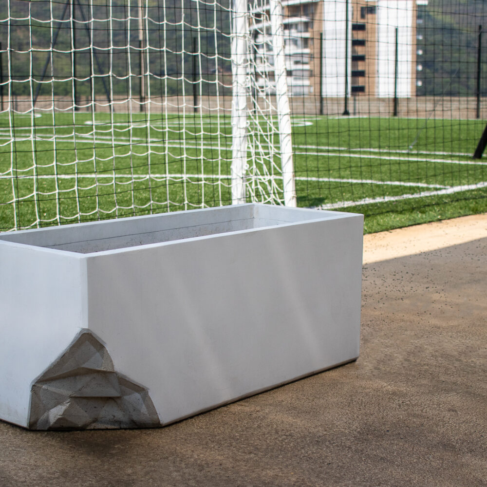 Caracterizada por ser una pieza escultórica polifacetada en concreto reforzado de color y acabado blanco pulido y gris rustico. Cuenta con una composición modular y lineal que configuran el espacio de forma elegante y sobria.