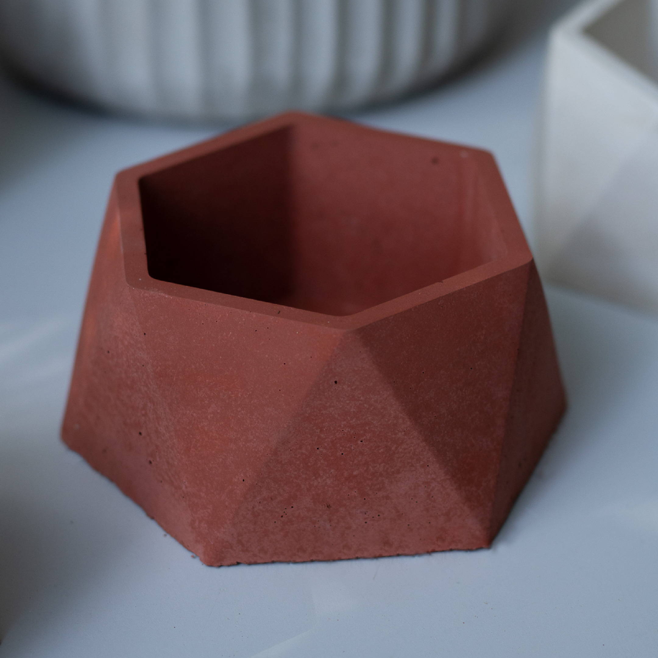 Hermosa Matera pequeña de forma Hexagonal perfecta para suculenta y demás plantas pequeñas para cualquier zona que necesite de un toque delicado y sobrio.